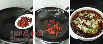 4、最后炸干辣椒的时候火一定要小,以免将干辣椒烧糊。