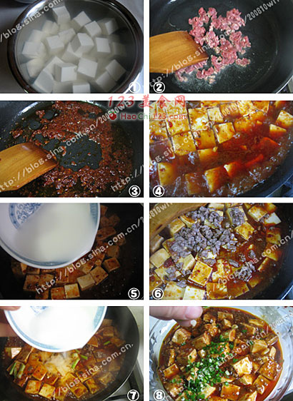 3、两个“2分钟”两次“勾芡”很重要。做“麻婆豆腐”,先烧制豆腐2分钟,豆腐烧入味后勾1次芡,再放入牛肉,再烧2分钟再勾1次芡,两个两个“2分钟”两次“勾芡”,烧出来的味道不同凡响。