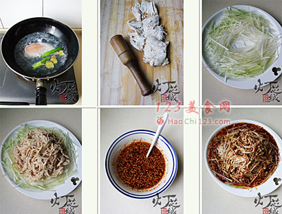 4、这道菜制作极其简单,煮、捶、撕、切、调、淋六个字儿搞定,调味汁儿是关键。选用新鲜的鸡肉和自制辣油效果更佳。用“看之勾欲,食之回味,久品不厌”形容这道菜,很恰当。