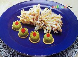 1、鳜鱼治净,取肉,切花刀,拍淀粉,入油锅炸至外酥里嫩。