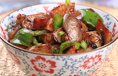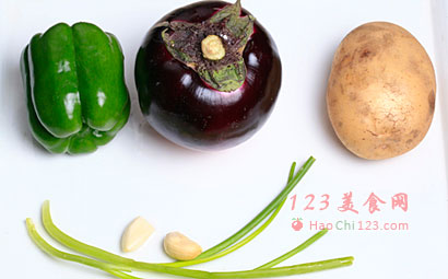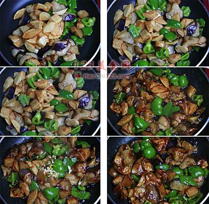 9、放入茄子、土豆、柿子椒。