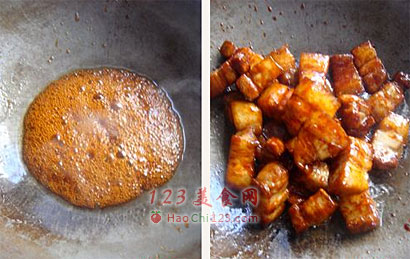 6、炒糖色的数据:每500克生肉,用15克冰糖。