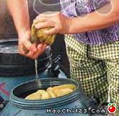 3、加满开水,加一点盐,不加也行,用石头压上防止白菜漂起,不要让白菜露出水面,桶口用塑料膜封好,与空气隔绝。放置在10~20度20天以上,温度越高发酵时间越短。