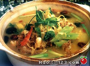 把骨头熬透,加百叶,于辣椒条及腰豆调好即成。