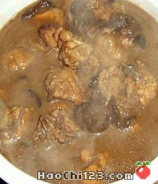 4、滗去一部分油(锅内留油约75克),将猪肉、鸡足鸭掌同料酒、葱姜放入稍火南,加入鸡汤,烧沸去尽浮沫。烧锅底垫上蔑算,再垫上鸡足、鸭掌,然后将鱼头、猪肉及汤汁全部倒入,加酱油、红酱油、金钩、白菌等,置小火上慢烧约30分钟至熟,待汤汁约剩1/3时,去掉葱姜、猪肉、鸡足、鸭掌等,然后加入冰糖和蒸好的大蒜,烧至冰糖熔化,汤汁浓稠起锅,盛于大盘内即成。