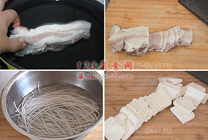 3、将干粉条洗净用凉水泡半个小时以上,也可以不泡炖鱼的时候直接放干粉条。