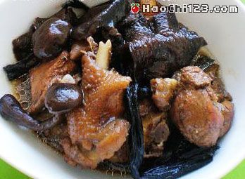 鸡、榛蘑、葱、姜、酱油、糖、大料、盐、料酒。