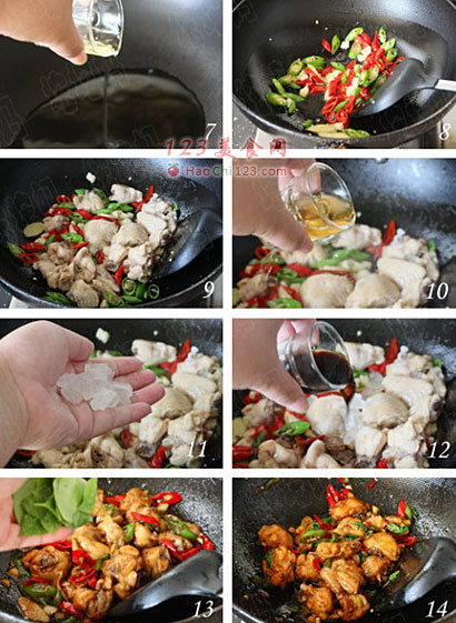 14、继续翻炒至汤汁粘稠,使汤汁均匀的包裹在鸡肉上,即可关火出锅。