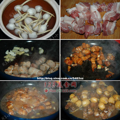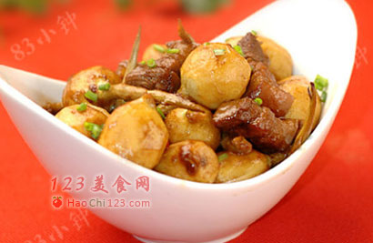 5、下入处理好的慈菇,烧到慈菇熟烂后调入盐调味,撒少许胡椒粉,收汁后撒上葱花即可。