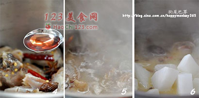 6、待猪蹄炖软后(可用筷子戳一戳),加入萝卜。