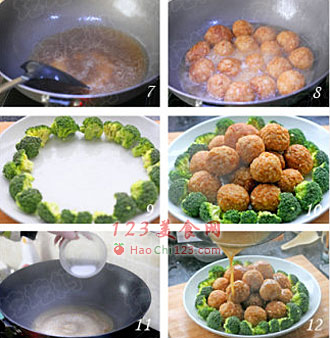 8、下入炸过的肉丸,转小火,盖上锅盖焖煮,至水份收至四分之一。