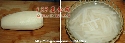 1、藕丝切好后浸泡其一是为了防止藕丝变色。第二也是为了洗去多余的淀粉,让炸好的藕丝外表更脆。