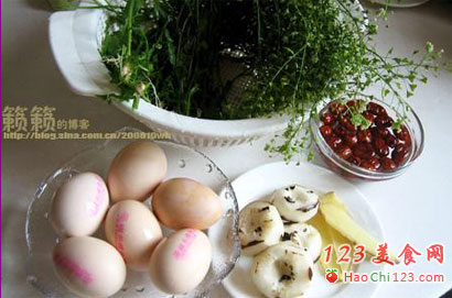 2、准备好材料:鸡蛋、马蹄、生姜片、红枣(份量根据就食者人数增减)。
