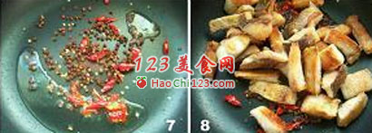 7、锅中留底油,小火放入干辣椒和花椒煸出香味。