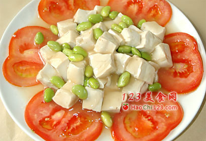 豆腐、番茄、豆米、浓汤宝、蚝油、盐、糖、生粉、鸡精。