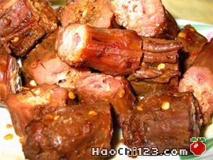 2、干辣椒以选干小米椒为好,因为这种椒色红油亮、辣味较重。辣椒剪成节后,还应保留辣椒籽,因为辣椒籽也有增加卤汁香味的作用。炒制干辣椒时,宜重放精练油,稍炒即可(切忌炒焦成糊辣风味),掺入鲜汤煮制后,方可突出其“劲辣”风味。