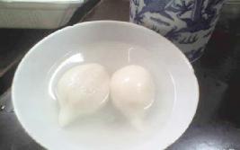 3.锅内放清水,烧沸后将汤团生坯放下去,并用铁勺背部不时在锅底搅动,以免汤团相互粘住或粘在锅底。约煮10分钟,水沸,汤团浮起呈玉色时,再加些冷水在锅里不使水沸滚,并让汤团在锅中焖3至4分钟,出锅即成。