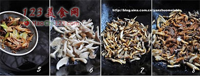 6、7、开大火,下入蘑菇炸至金黄色(喜欢吃干韧口感的,可延长炸制时间,但别炸焦糊了,另,我用的油比较少,分了三次炸,最后再一起炸)。