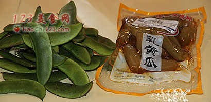 新鲜芸豆、乳黄瓜(酱瓜)。