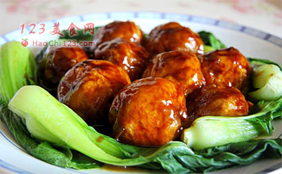 油面筋8个、肉馅250克、菜心、葱姜少许。