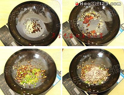 9、再倒入豆豉炒香。