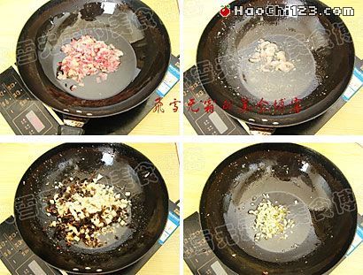 8、倒入姜末,蒜末。