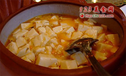 6、煮开后略熬至蟹粉出味后,下豆腐小火煨制3分钟;