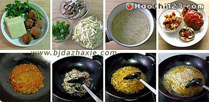 4、炒锅烧热,放入猪油(或植物油),下姜末炒出香味,下蟹黄煸炒,烹入黄酒去腥,加少许盐炒匀后盛出;