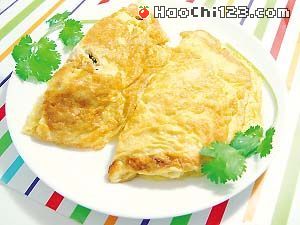 6.勺内抹油,将蛋液摊成约10个圆形蛋皮;