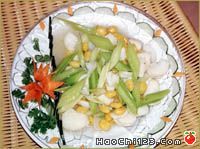 2、 坐锅点火倒油,待油热后放入银杏炒熟,再加入西芹、白糖、盐、高汤、百合、鸡精、水淀粉勾芡即可。