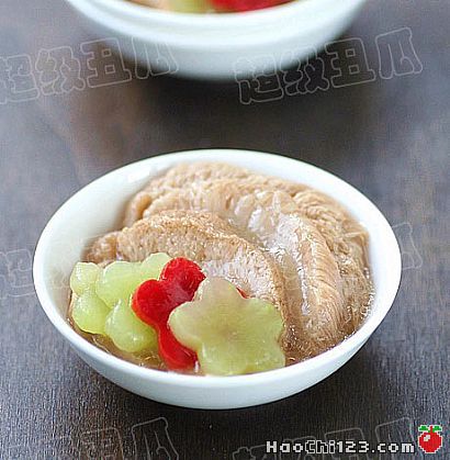 6) 蒸好后倒掉猴头菇碗中的汤汁,留猴头菇片备用。