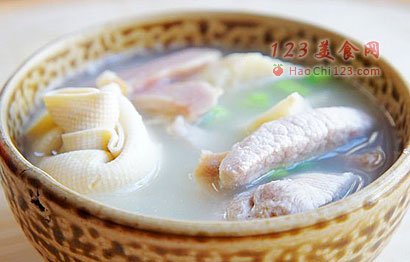 贴士:腌笃鲜,搞不清到底是上海本帮菜,还是杭帮菜,反正就是那一片的吧。这里的“笃”,是方言,用小火慢炖的意思。比如煮粥,开锅后,我们那边都习惯说:再多笃一会儿!意思就是小火再多煮一会儿!成品腌笃鲜,口味咸鲜,汤白汁浓,肉质酥肥,笋清香脆嫩,鲜味浓厚,好吃的咧!
