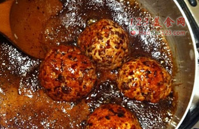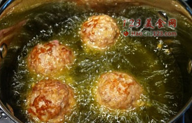 3、炸制肉丸的步骤主要为定型及表面脆皮;不可炸过久以致肉丸吃口太老。