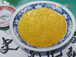 油润黄亮,似粥非粥,似糕非糕,绵软香甜。