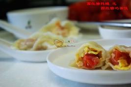 鸡蛋3个,西红柿500克,猪肉馅100克,面粉500克,食用油适量,盐小匙,白砂糖适量,温水500毫升