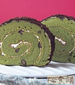6.将蛋糕体抹上白奶油霜后,藉由桿面棍滚动烤焙纸,将蛋糕由内向外推捲成圆筒形,再静置5~10分钟定型后,表面再涂满奶油霜并均匀沾上巧克力饼干屑即可。
