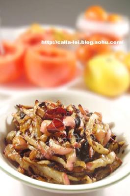 去餐馆吃饭,负责点菜的人总会问:吃什么?旁人总是答:随便。在家亦然,掌勺的总会问:吃什么?答的人总说:随便。如果,真有“随便”这道菜,那绝对傲居点击排行榜之首。今就应景做个炒“随便”吧。萝卜丝脆爽,香菇腿韧,小黑豆豉特别提味。 不愧为下饭菜家族新成员。