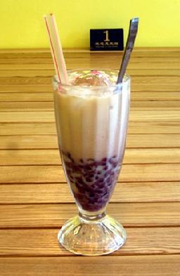 2 熟红豆,冰块,淡奶,果糖,牛奶依次加入杯里7分满。