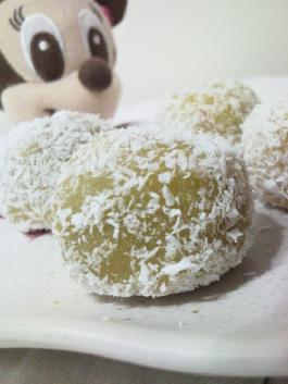 5.趁热在椰丝里滚一下,均匀的沾上椰丝。室温下放凉后放入冰箱冷藏1个小时以上。