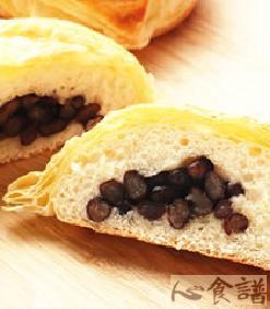 2.将小面糰桿压成圆形面皮,包入30公克的蜜红豆馅后收口并放入烤盘中,让其在温度38℃、湿度85%的环境中作最后发酵。