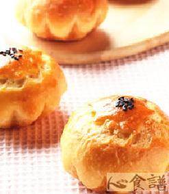 A.高筋面粉145公克,低筋面粉62公克,速溶酵母4公克,奶粉31公克,蛋73公克,细砂糖17公克,盐3公克,水42公克,B.奶油73公克,C.带壳红豆馅180公克,蛋液适量