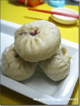 1.面皮做法:1.将面粉倒入容器,酵母用不烫手的温水活匀,倒入面粉,加冷水活好面。2.置在温暖处,静置发酵一小时左右,见面团发至2倍大即可。3.拿出面团重新揉过,放出面团中的气体。静置再发酵,大约20分钟。4.分剂子,擀圆,包。5。上锅冷水大火蒸,水开