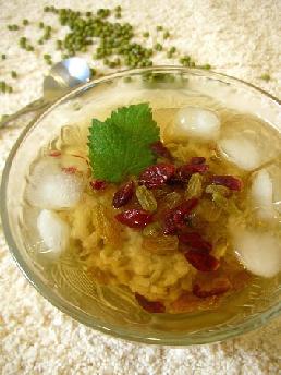 绿豆,糯米,砂糖,薄荷叶,葡萄干,蔓越莓干,冰块