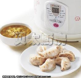 速冻蒸饺放入煲内蒸格,然后按照说明设置好,只需稍等片刻,热气腾腾的早餐就好了。