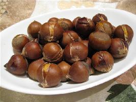 网上有很多烤栗子的方法都是要中途给栗子刷糖水。栗子已开了口,烤后很好剥皮不需要用牙咬,那刷在栗子壳上的糖水不是白费功夫?如果是烤给亲朋好友吃的,你或许还要担心他们会不会用吃过栗子的甜手在你家里到处乱摸。。。懒人总是会为自己可以少做事找到很多借口的。 烤栗子用天津良乡栗子最好,这种桂林锥栗烧肉、烧鸡不错,用来烤就甜度不够了,为了给不甜的栗子增加点甜度,又可使栗子烤后不干,可以在烤前用糖水将栗子泡一泡,这样烤栗子的最大好处就是省事、又不太脏手。