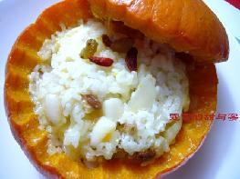 小南瓜,糯米,葡萄干,百合干,枸杞,椰肉,牛奶,冰糖