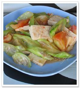 西红柿丝瓜炒冻豆腐
