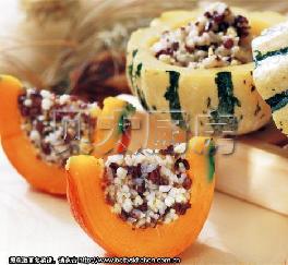 大腹便便的南瓜将所有的杂粮一气吞了下去,接着又舒舒服服的做了一个“桑拿”,将自己的甘甜释放了出来,与朴实的粮食揉和在一起,缠绵入香。热量标注:此菜热量为213千卡/人