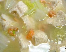 辅料:白菜50克,冬笋50克,虾籽25克,