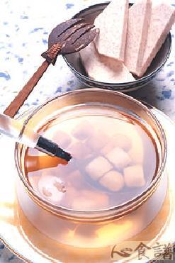 6.)将刚才煮芋头的水,再添加适量的水和红砂糖煮成糖水。